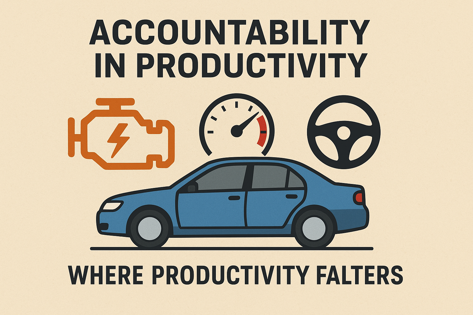 Low productivity isn’t a random breakdown. It’s a sign that something within the organizational vehicle is misaligned, under-maintained, or running on low-quality fuel. To get back on the road, leaders must identify where performance stalls occur and who’s accountable for keeping the system running smoothly.